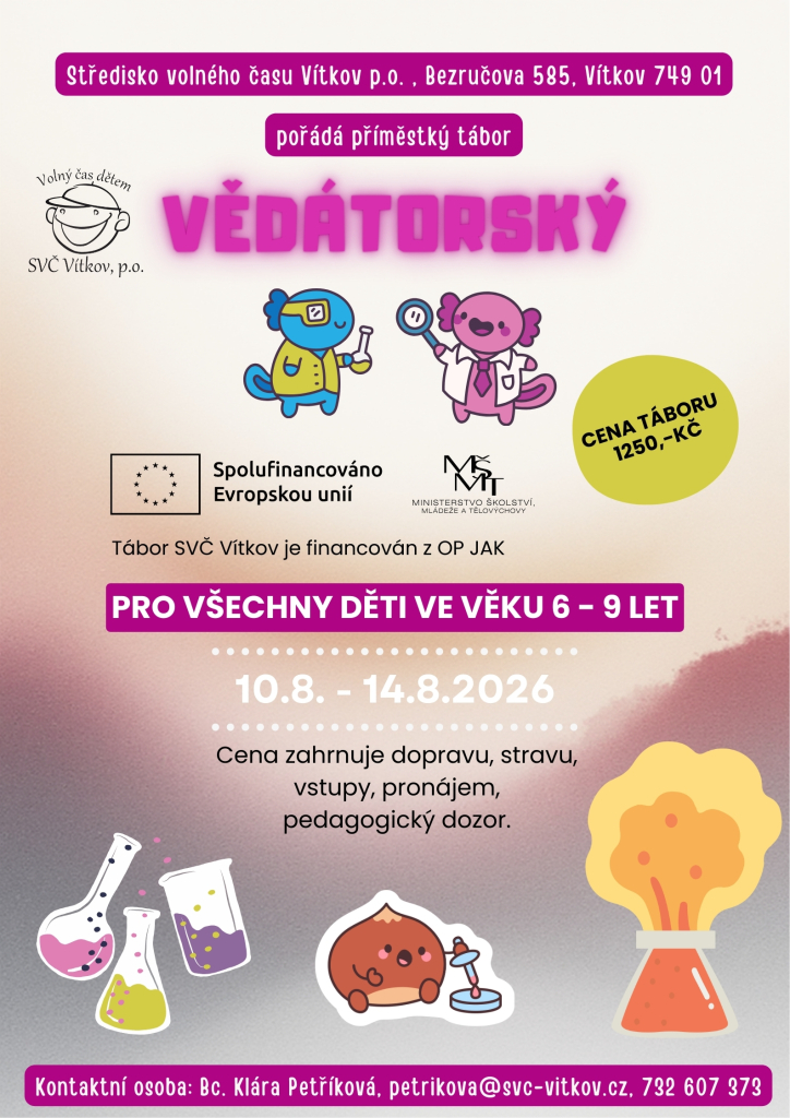 Čeká vás spousta zábavných pokusů, pohybových her a samozřejmě i výlet!